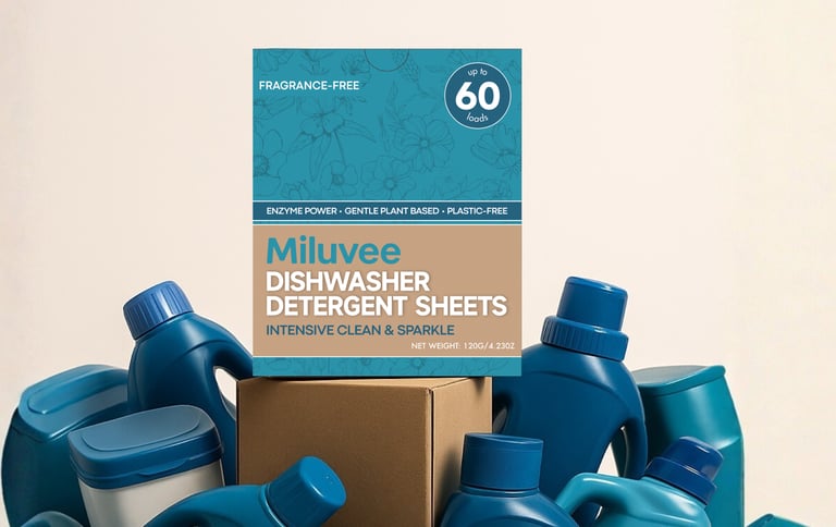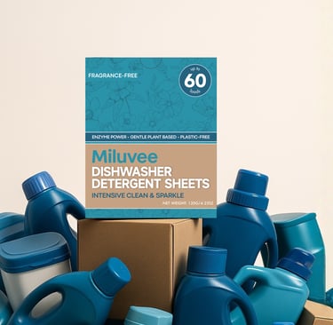 Miluvee dishwasher sheets are made for people who want: strong cleaning, less residue, less plastic, advanced formula, and easy storage.