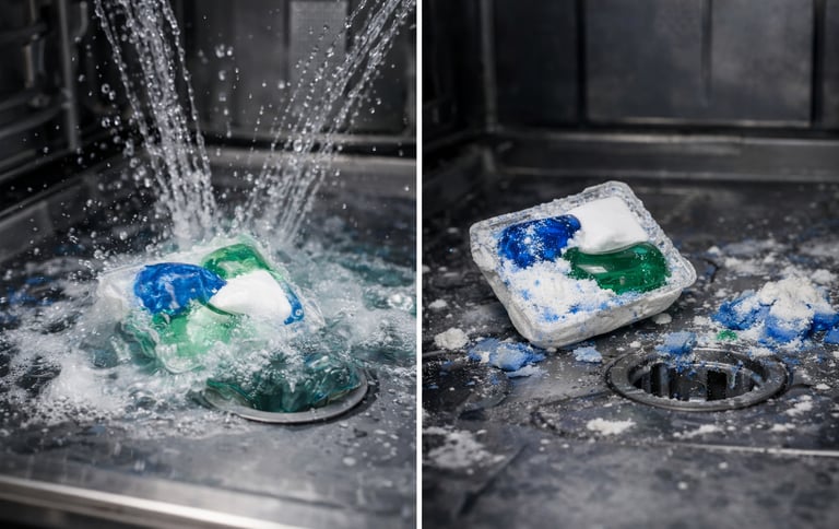 Dishwasher pods and tablets are made to dissolve during the wash cycle. But not all formulas dissolve the same way. In short cycles, cold water, or older dishwashers, the coating may not break down completely. When this happens, small pieces can stay inside the filter or spray arms. Some tablets also contain extra binders or fillers to keep their shape. These ingredients can leave residue on dishes or inside the dishwasher. This is one reason some people start looking for a lighter and simpler detergent.