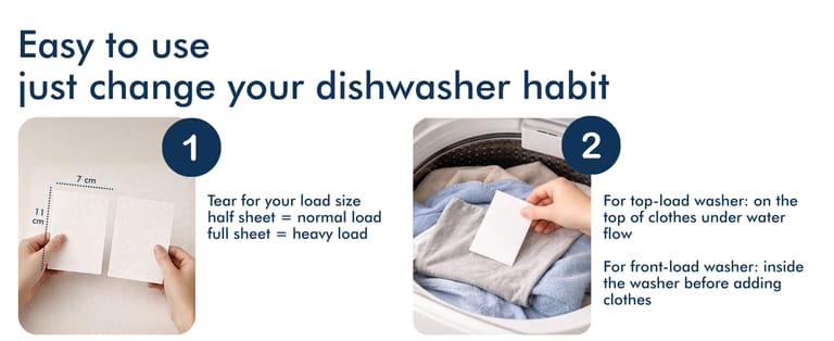 Every sheet delivers highly concentrated cleaning power. For heavy loads, use a full sheet or more for best results.